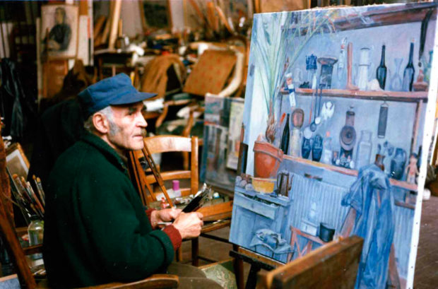Comme vous pouvez le remarquer sur cette photo, si son atelier ressemblait à un véritable capharnaüm, certains éléments y étaient classés avec énormément de précision, et, comme il travaillait longuement sur une toile, gare à lui, si un de ses visiteurs, s’avisait de le déplacer !