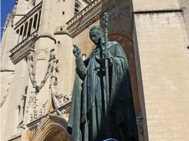 Les nombreux touristes qui visitent Mende peuvent l’admirer devant la cathédrale.