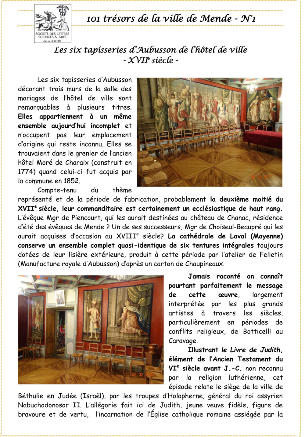 Trésors de Mende Pièce 1 – Les 6 tapisseries d’Aubusson de l’hôtel de ville Vous aimerez peut-être également Pièce 96 – Les précieuses sculptures sur bois de la cathédrale. Pièce 73 – Portes et fenêtres de la Renaissance Pièce 88 – Les deux incunables de l’Œuvre de Guillaume Durand