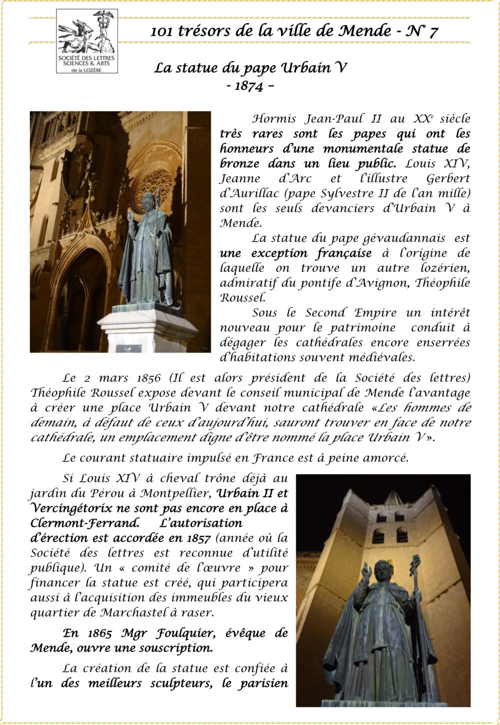 Trésors de Mende Pièce 7 – La statue du pape Urbain V Vous aimerez peut-être également Pièce 10 – Le lavoir de la Calquière Pièce 51 – L’encyclopédie de Diderot Pièce 72 – L’assomption de la Vierge Marie
