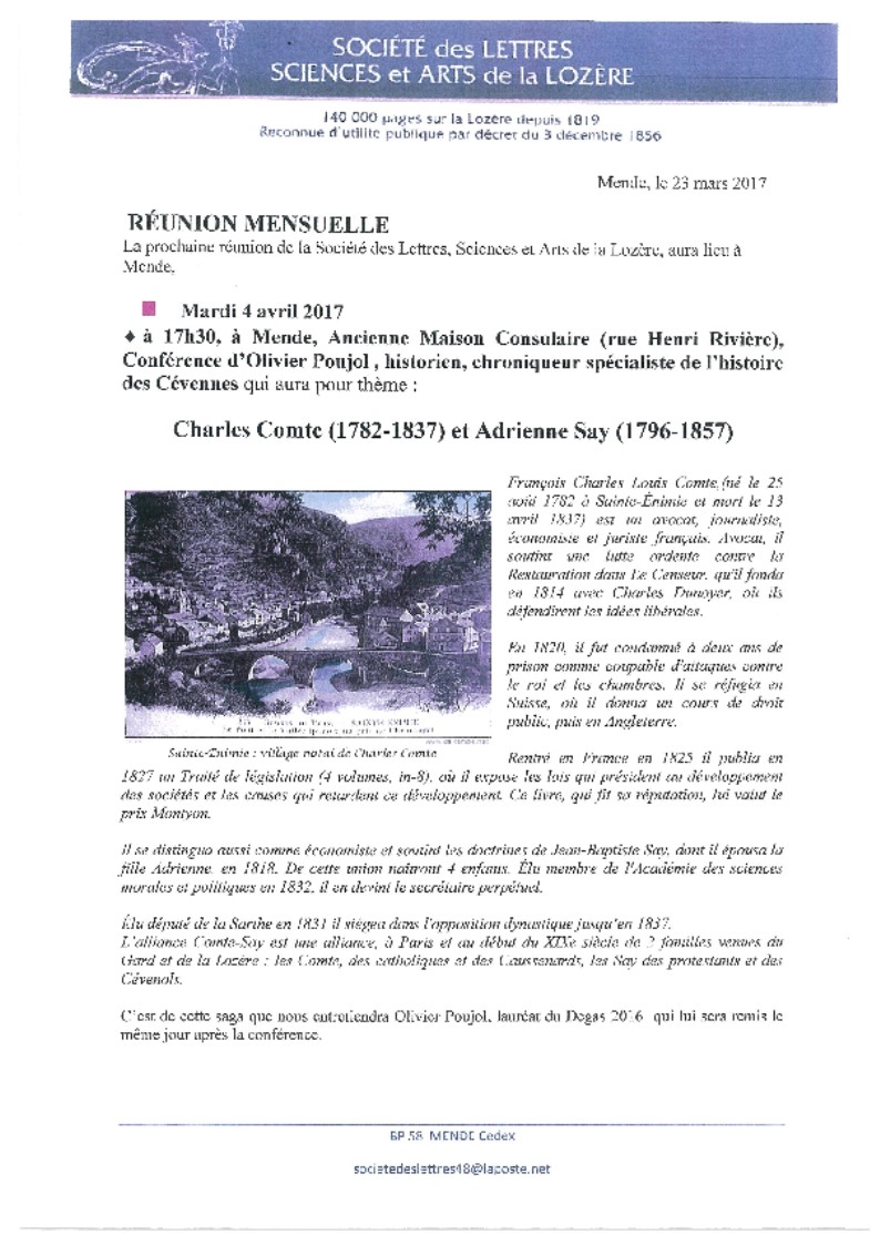 Récemment 4 avril 2017 – Charles Comte (1782-1837) et Adrienne Say (1796-1857) Voici l’annonce : Vous aimerez peut-être également 15 janvier – Nos collections n° 101 – dernier article de notre rubrique « Nos collections » 21 août 2021 – « Nos collections » n°78 – Qui étaient Privat, Firmin, Frezal, Hilaire, Salvaterra ? Mardi 6 mai 2025 – « Henri Bourrillon, une personnalité publique singulière »