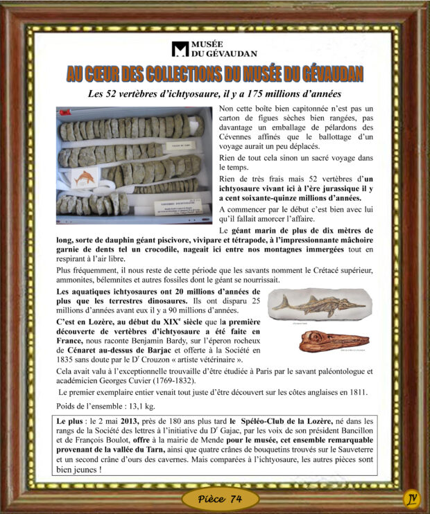 Trésors du Musée (Nos collections) 74 – Les 50 vertèbres d’ichtyosaure, il y a 175 millions d’années Non cette boîte bien capitonnée n’est pas une boîte de macarons frais Vous aimerez peut-être également 59 – Portrait du pape Urbain V, 1841, par Mme Loizelier 40 – La Bête de Poussière, 2019, de Lionel Sabatté 82 – L’ostensoir de style baroque, vers 1830