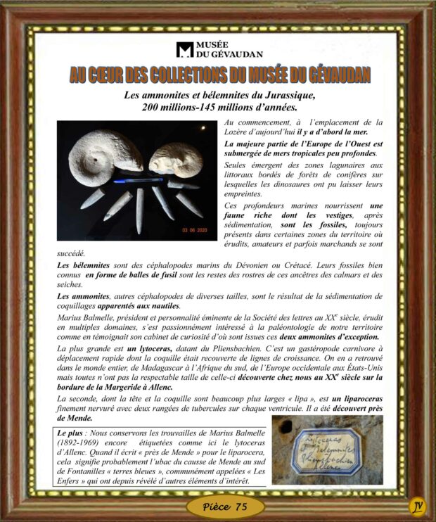 Trésors du Musée (Nos collections) 75 – Les ammonites et bélemnites du Jurassique – 200 millions-145 millions d’années Au commencement à la place de la Lozère d’aujourd’hui il y a d’abord la mer Vous aimerez peut-être également 84 – Le portrait du comte-évêque Adam de Hurteloup, 1604 3 – Le crâne trépané du dolmen de Chapieu (5000 ans ? avant J.-C.) 68 – La Sainte Famille, XVIIe siècle