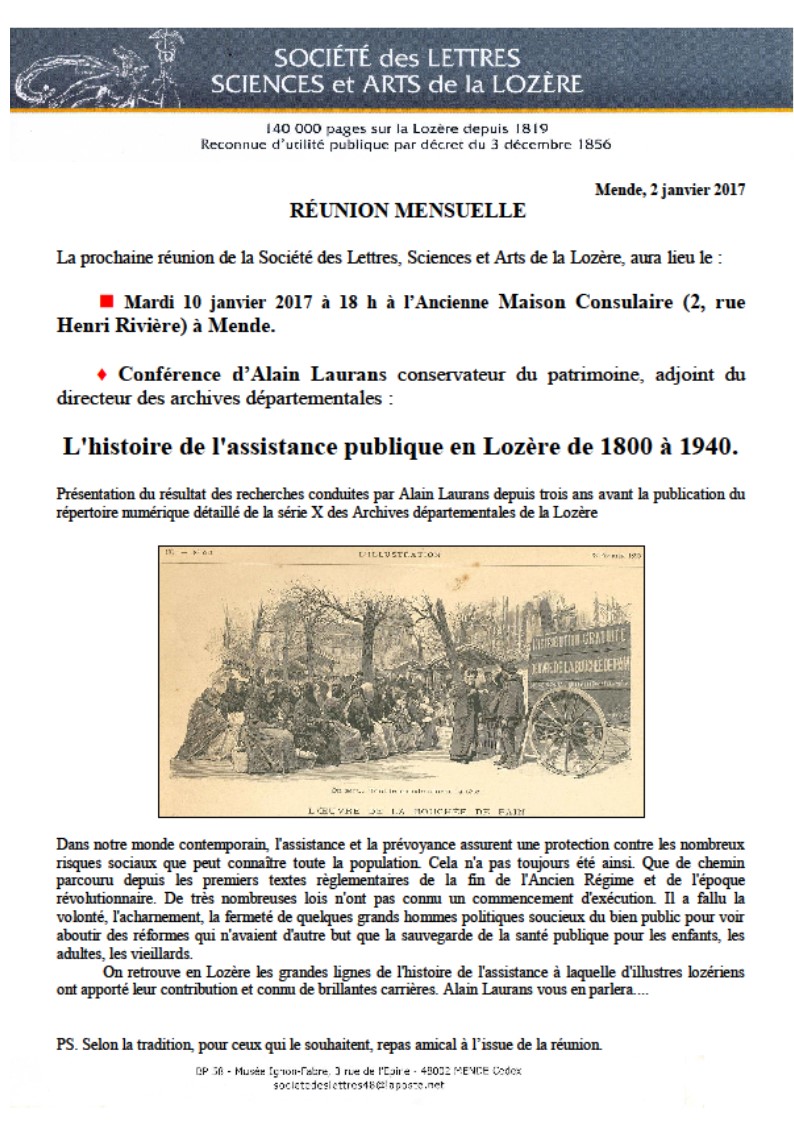 Récemment 10 janvier 2017 -L’histoire de l’assistance publique en Lozère de 1800 à 1940 Voici l’annonce : Vous aimerez peut-être également 12 juillet 2022 – «Duroc, le confident de Napoléon» 28 août 2021 – « Nos collections » n°79 – Que fait ce marquis au musée de Mende ? Mardi 14 mai 2024 – « Pierre Teilhard de Chardin : un aventurier de l’Esprit »