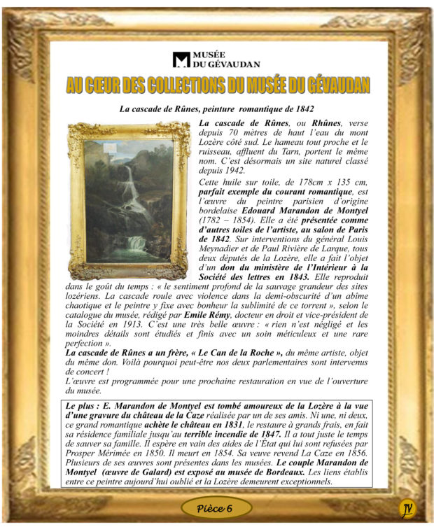 Trésors du Musée (Nos collections) 6 – La cascade de Rûnes, peinture romantique de 1842 La cascade de Rûnes, ou Rhûnes, verse depuis 70 mètres de haut … Vous aimerez peut-être également 5 – Portrait du docteur Samuel Blanquet – 1740 66 – La Vierge et l’Enfant Jésus, XVIIe Siècle 45 – Le passage de Ménilmontant au tricycle, l’été, 1981, Victorin Galière