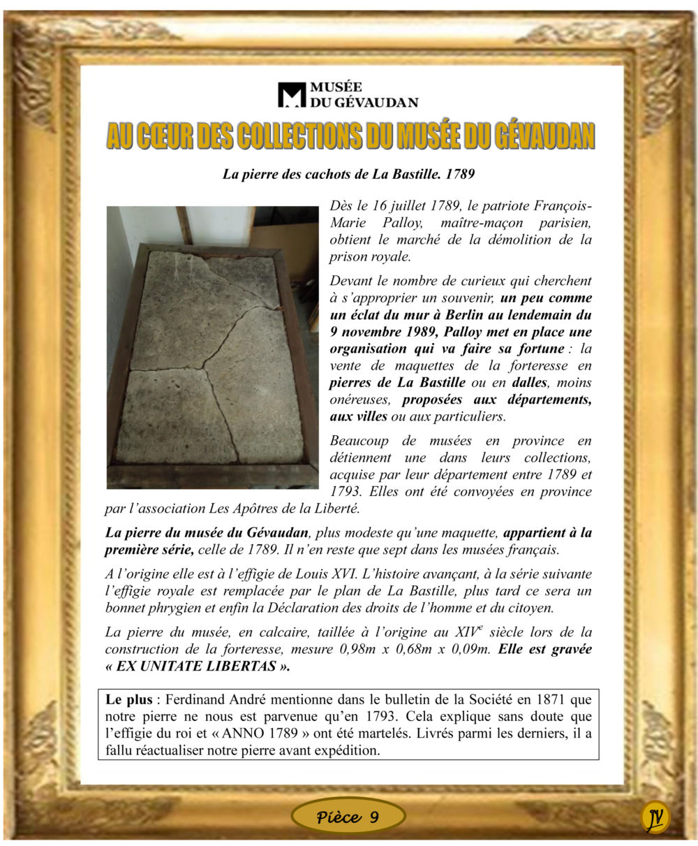 9 – La pierre des cachots de La Bastille. 1789