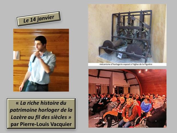 En conclusion, il a évoqué les horloges du XVIIIème au XXème siècle dont on trouve traces localement, ce qui lui a permis de faire état de la poursuite de ses recherches sur notre patrimoine horloger.