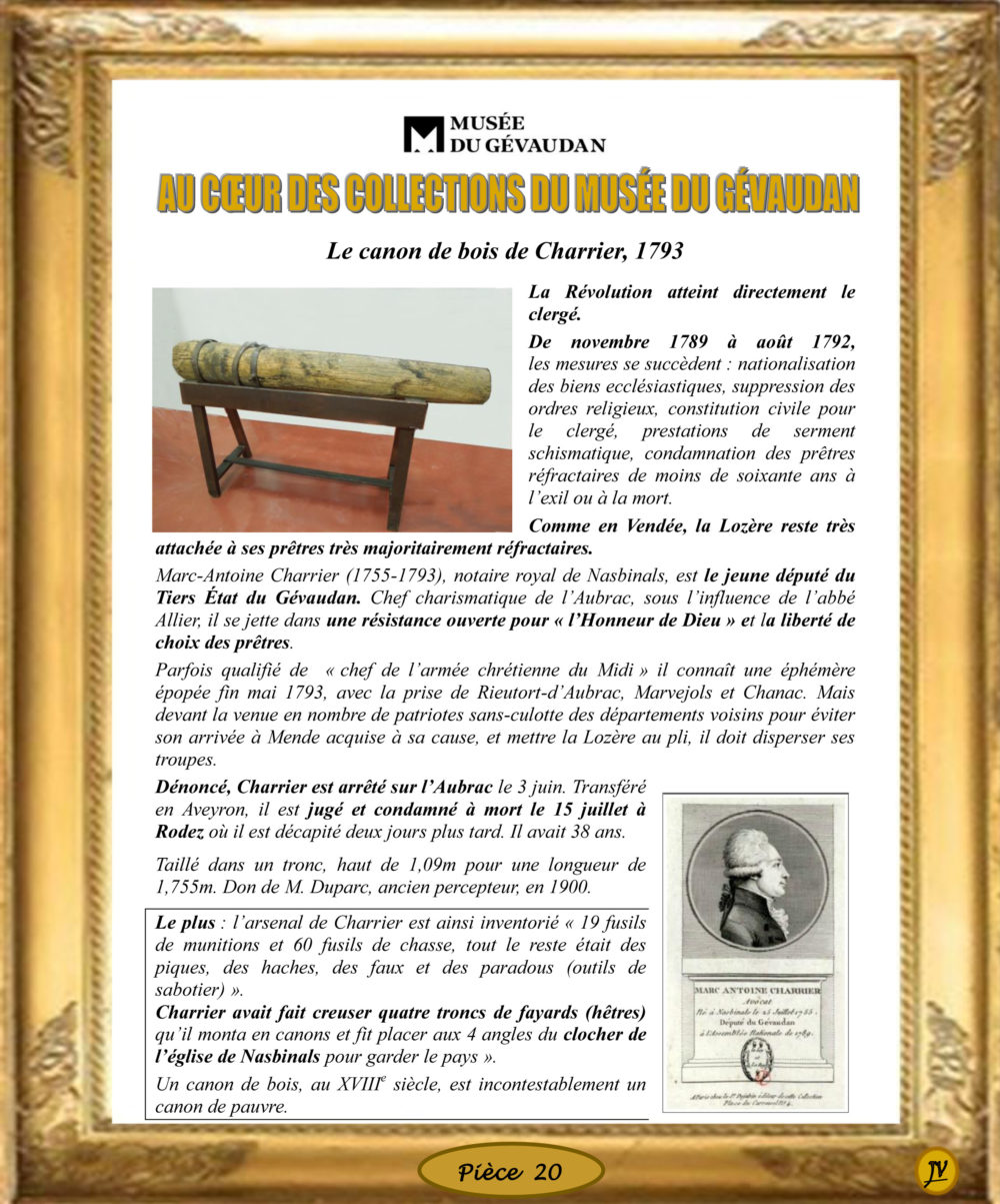 Trésors du Musée (Nos collections) 20 – Le canon de bois de Charrier, 1793 La Révolution atteint directement le clergé … Vous aimerez peut-être également 21 – L’atelier au fauteuil bleu, 1975, Victorin Galière (1914 – 1990) 11 – L’inestimable herbier de Prost. 1800-1840 93 – Le précieux portrait du recteur Ranc, 1835