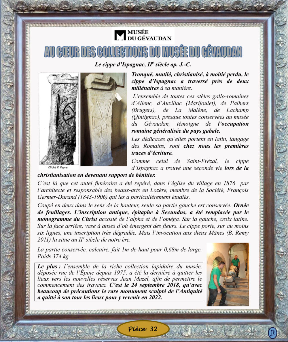 Trésors du Musée (Nos collections) 32 – Le cippe d’Ispagnac, IIe siècle ap. J.-C. Tronqué, mutilé, christianisé, à moitié perdu, le cippe d’Ispagnac … Vous aimerez peut-être également 99 – L’omelette, 1982, de Jean Malice 76 – L’empreinte de dinosaure, il y a 200 millions d’années -Hettangien) 87 – La statue du dieu gaulois Sylvain-Sucellus