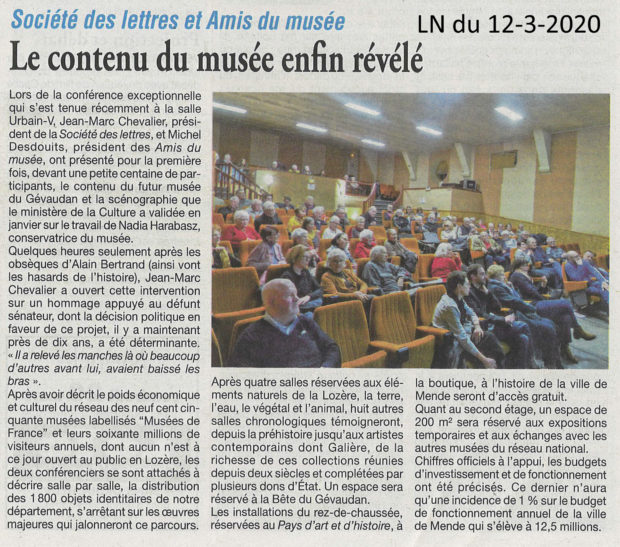 Presse Lozère Nouvelle du 12 mars 2020 Le contenu du musée révélé Vous aimerez peut-être également Lozère Nouvelle du 22 septembre 2022 Midi Libre du 4 mai 2019 Midi-Libre du 23 décembre 2024