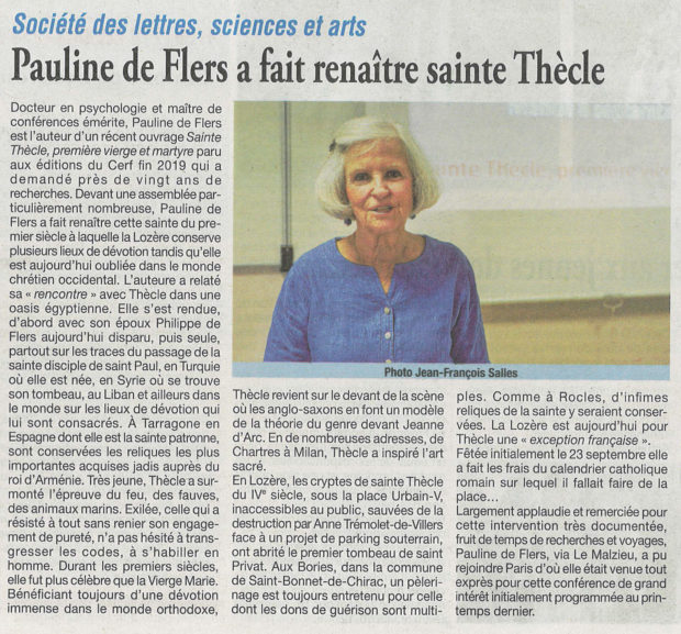 Presse Lozère Nouvelle du 17 septembre 2020 Pauline de Flers a fait renaître Sainte Thècle Vous aimerez peut-être également Midi Libre du 23 mai 2019 Midi libre du 21 septembre 2022 Midi Libre du 18 juin 2021