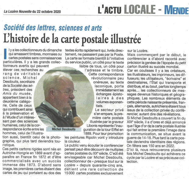 Presse Lozère Nouvelle du 22 octobre 2020 L’histoire de la carte postale illustrée Vous aimerez peut-être également Midi Libre du 6 novembre 2021 Lozère Nouvelle du 21 octobre 2021 Lozère Nouvelle du 4 mai 2023