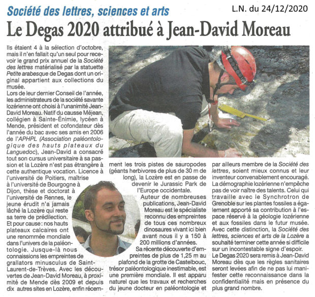 Presse Lozère Nouvelle du 24 décembre 2020 Le Degas 2020 attribué à Jean-David Moreau Vous aimerez peut-être également Lozère nouvelle du 6 avril 2023 Midi Libre du 3 janvier 2021 Lozère Nouvelle du 26 septembre 2019
