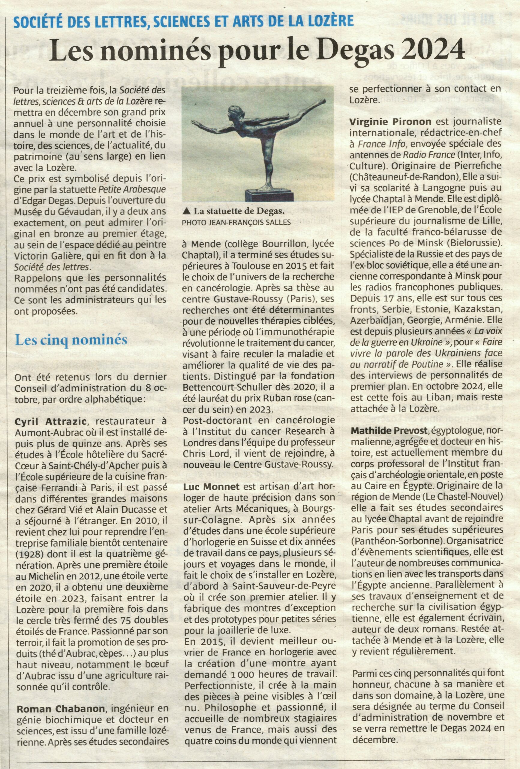 Presse Lozère Nouvelle du 24 octobre 2024 Les nominés pour le Degas 2024 Vous aimerez peut-être également Midi Libre du 7 septembre 2022 Midi Libre du 23 octobre 2021 Midi Libre du 13 août 2021