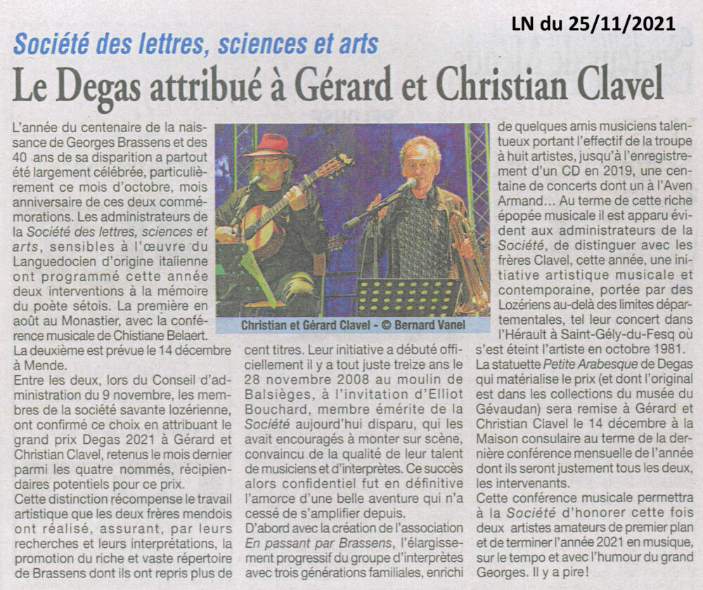 Presse Lozère nouvelle du 25 novembre 2021 Le Degas attribué à Gérard et Christian Clavel Vous aimerez peut-être également Lozère Nouvelle du 5 décembre 2024 Lozère Nouvelle du 22 février 2024 Lozère Nouvelle du 28 octobre 2021