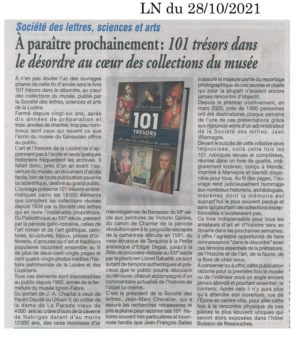 Presse Lozère Nouvelle du 28 octobre 2021 A paraître prochainement : 101 trésors dans le désordre au coeur des collections du musée. Vous aimerez peut-être également Lozère Nouvelle du 4 mai 2023 Midi Libre du 30 avril 2022 Midi Libre du 7 mai 2024