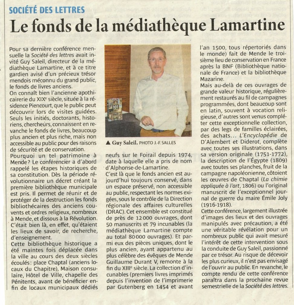 Presse Lozère Nouvelle du 4 avril 2024 Le fonds de la médiathèque Lamartine Vous aimerez peut-être également Lozère Nouvelle du 2 mars 2023 Midi Libre du 18 juin 2021 Lozère Nouvelle du 27 novembre 2025