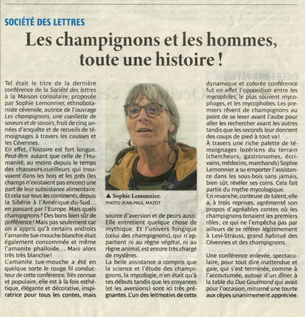 Presse Lozère Nouvelle du 5 décembre 2024 Les champignons et les hommes, toute une histoire ! Vous aimerez peut-être également Lozère Nouvelle du 28 octobre 2021 Midi Libre du 11 août 2019 Lozère Nouvelle du 3 juillet 2025