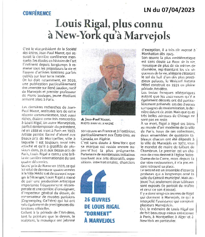 Presse Lozère nouvelle du 6 avril 2023 Louis Rigal, plus connu à New-York qu’à Marvejols Vous aimerez peut-être également Lozère Nouvelle du 12 mars 2020 Midi Libre du 13 novembre 2020 Lozère Nouvelle du 28 octobre 2021