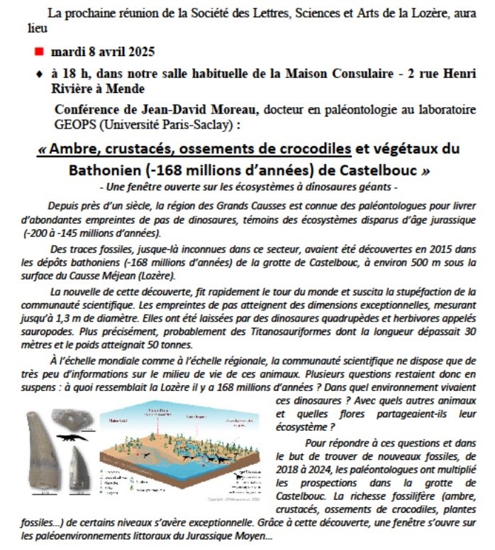 « Ambre, crustacés, ossements de crocodiles et végétaux du Bathonien (-168 millions d’années) de Castelbouc »