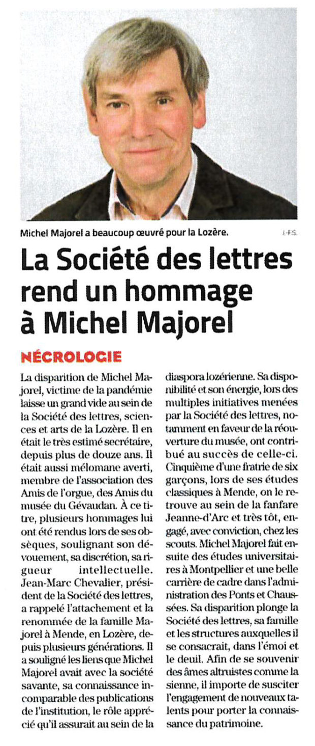 Presse Midi Libre du 16 décembre 2020 La Société des lettres, sciences et arts de la Lozère en deuil Vous aimerez peut-être également Lozère Nouvelle du 17 décembre 2020 Midi Libre du 5 avril 2019 Lozère Nouvelle du 4 avril 2024