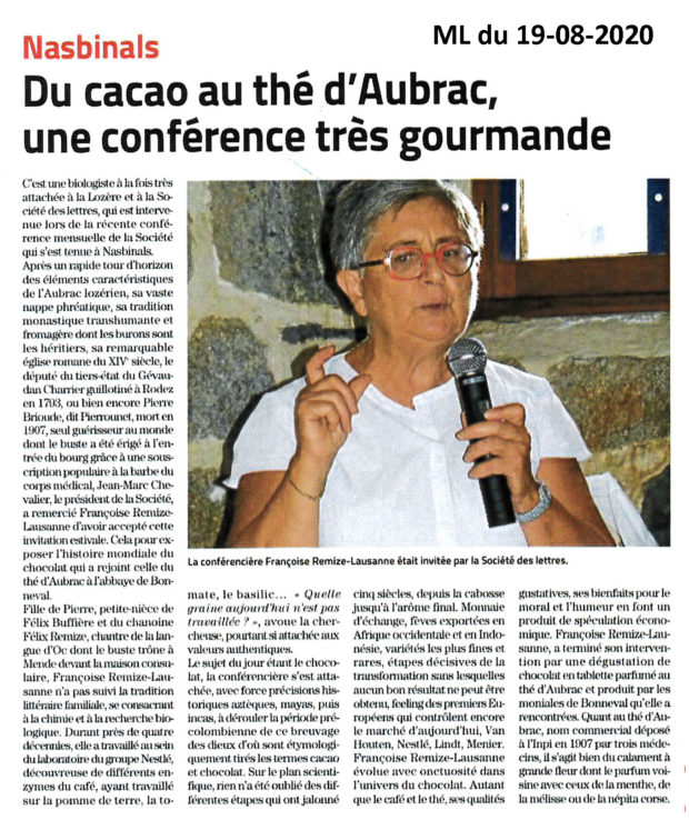 Presse Midi Libre du 19 août 2020 Du cacao au thé d’Aubrac, une conférence très gourmande. Vous aimerez peut-être également Lozère Nouvelle du 26 septembre 2019 Lozère Nouvelle du 5 décembre 2024 Lozère Nouvelle du 21 février 2019