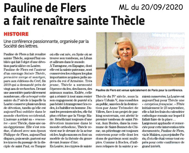 Presse Midi Libre du 20 septembre 2020 Pauline de Flers a fait renaître Sainte Thècle Vous aimerez peut-être également Midi Libre du 21 février 2024 Midi-Libre du 23 décembre 2024 Midi Libre du 11 août 2019