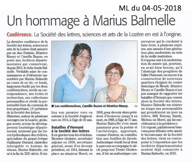 Presse Midi Libre du 4 mai 2019 « Marius Balmelle (1892-1969), plus d’un demi-siècle d’engagement à la Société des lettres” Vous aimerez peut-être également Lozère Nouvelle du 23 décembre 2021 Lozère Nouvelle du 12 mars 2020 Lozère Nouvelle du 20 août 2020