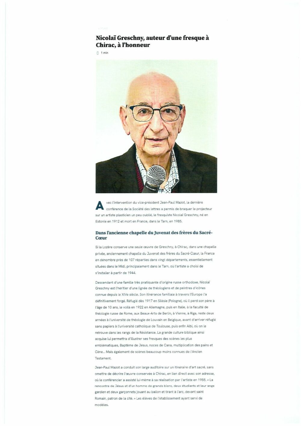 Presse Midi Libre du 9 février 2024 Nicolas Greschny, auteur d’une fresque à Chirac, à l’honneur Vous aimerez peut-être également Lozère Nouvelle du 30 mai 2019 Midi Libre du 19 janvier 2019 Lozère Nouvelle du 5 décembre 2024