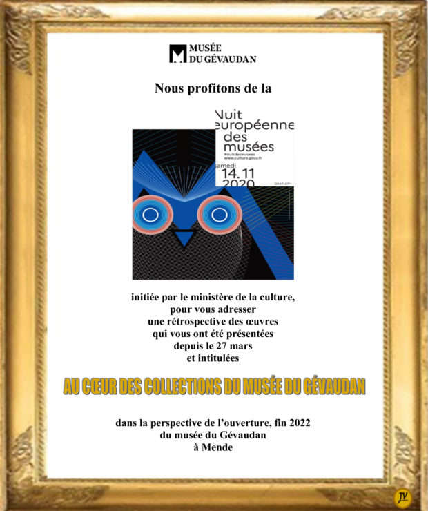 A l’occasion de la nuit des musées 2020, la Société des Lettres, sciences et Arts de la Lozère a envoyé à tous ses adhérents et sympathisants un diaporama reprenant les 37 pièces qui sont présentées dans notre rubrique « nos collections »