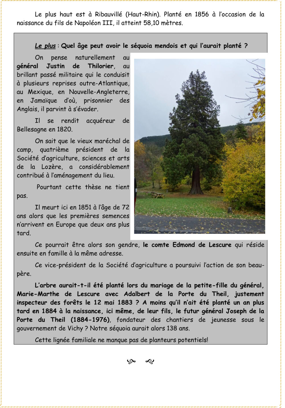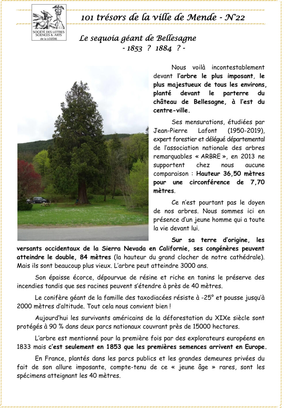 Trésors de Mende Pièce 22 – Le sequoia géant de Bellesagne Vous aimerez peut-être également Sommaire des « 101 Trésors (dans le désordre) de la Ville de Mende » publiés de janvier 2022 à décembre 2023 Pièce 11 – Le grand clocher de la cathédrale Pièce 8 – La tour de Lestang