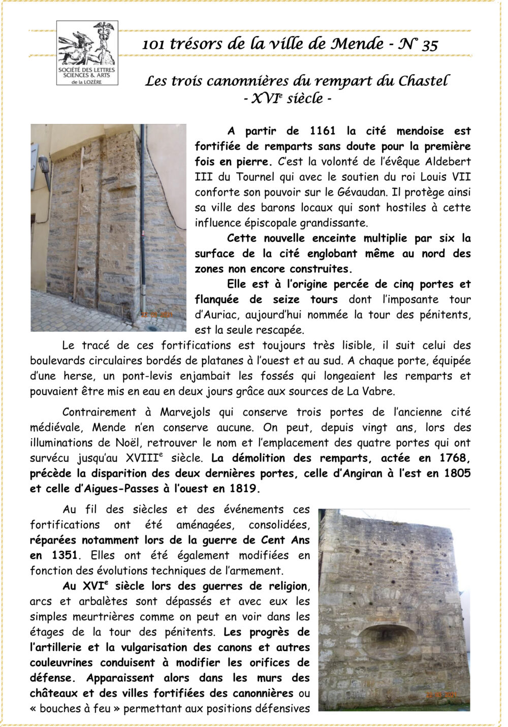Trésors de Mende Pièce 35 – Les trois canonnières du rempart du Chastel Vous aimerez peut-être également Pièce 62 – La fontaine du foirail Pièce 92 – Les cent gargouilles de la cathédrale de Mende Pièce 38 – Les oratoires à la Vierge