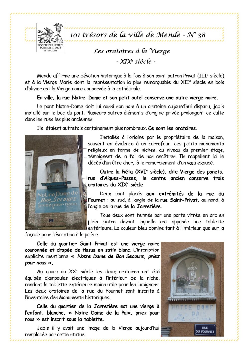 Trésors de Mende Pièce 38 – Les oratoires à la Vierge Vous aimerez peut-être également Pièce 39 – La Maison Consulaire Pièce 70 – Les grandes orgues de la cathédrale Sommaire des « 101 Trésors (dans le désordre) de la Ville de Mende » publiés de janvier 2022 à décembre 2023