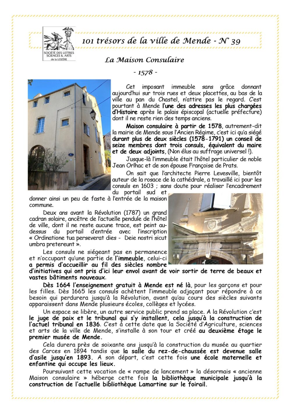 Trésors de Mende Pièce 39 – La Maison Consulaire Vous aimerez peut-être également Pièce 82 bis – les dix-neuf verrières basses de la cathédrale Pièce 35 – Les trois canonnières du rempart du Chastel Pièce 14 – Le buste de Lou Grelhet