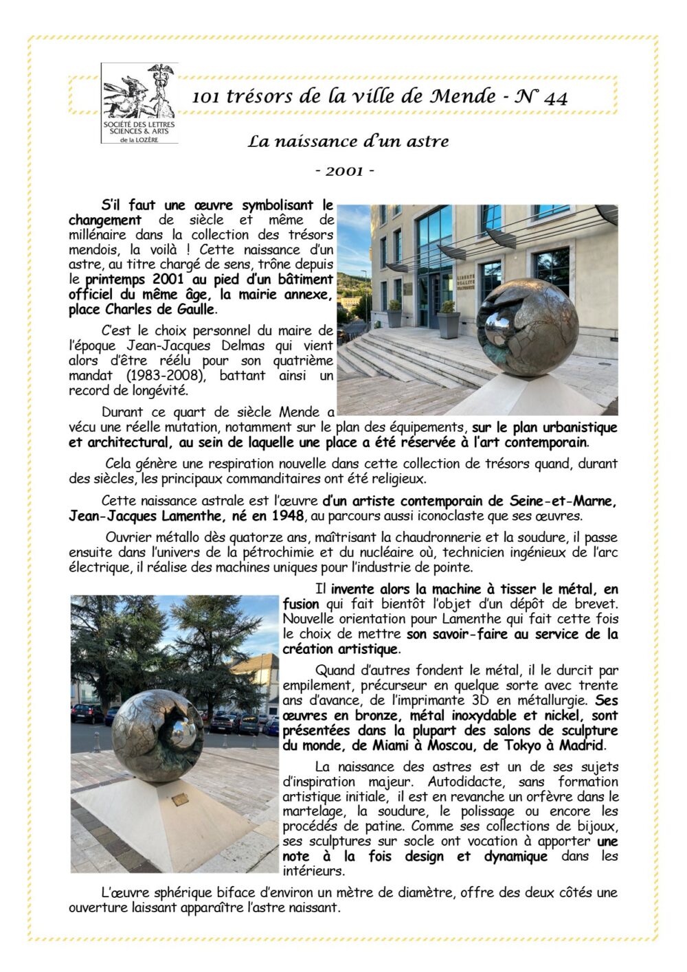 Trésors de Mende Pièce 44 – La naissance d’un astre Vous aimerez peut-être également Pièce 48 – Trois devantures et six commerces centenaires Pièce 55 – Les huit tapisseries d’Aubusson à la cathédrale Pièce 94 – L’hôtel de la préfecture, ancien palais épiscopal