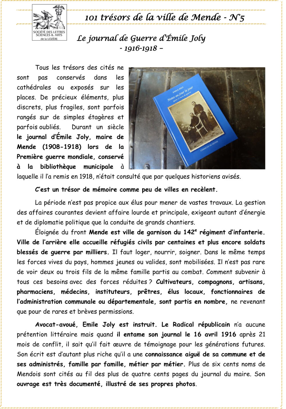 Trésors de Mende Pièce 5 – Le journal de guerre d’Emile JOLY Vous aimerez peut-être également Pièce 43 – La rosace (1608) – Le porche et le parvis de la cathédrale (1906) Pièce 94 – L’hôtel de la préfecture, ancien palais épiscopal Pièce 95 – Six marques des artisans d’art lozériens du XXIe siècle