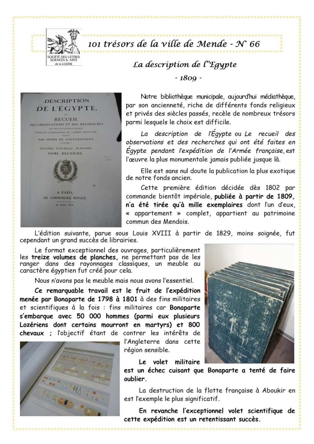 Trésors de Mende Pièce 66 – La description de l’Egypte Vous aimerez peut-être également Pièce 61 – Le cèdre de l’Atlas de Bellesagne Pièce 58 – La fontaine de la Mendozère Pièce 92 – Les cent gargouilles de la cathédrale de Mende