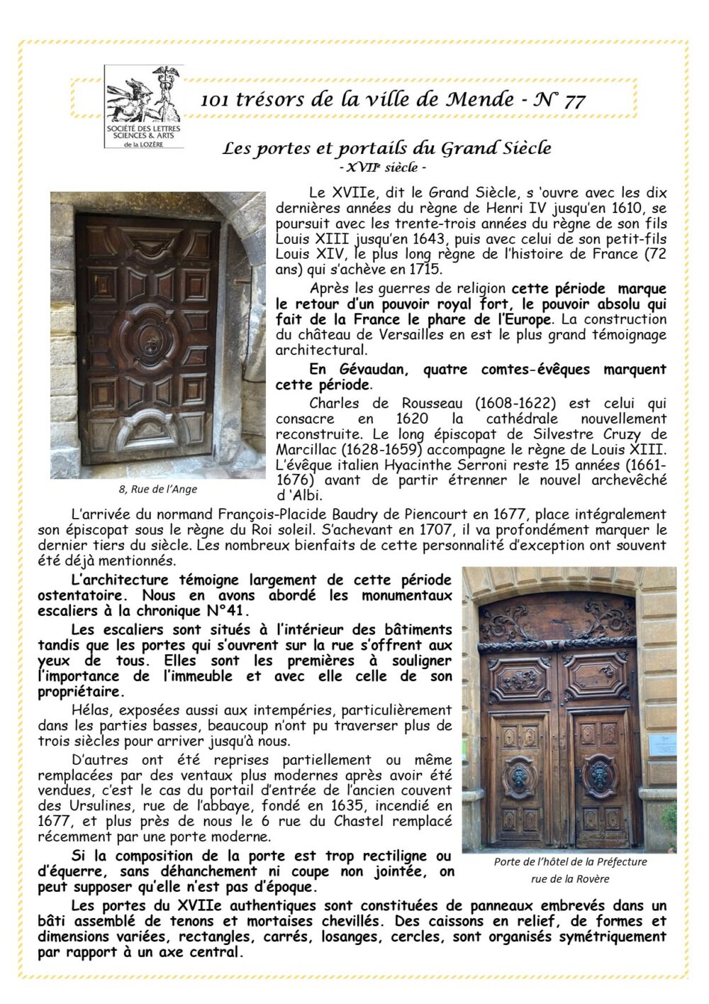 Trésors de Mende Pièce 77 -Les portes et portails du Grand Siècle Vous aimerez peut-être également Pièce 64 – La tour des Pénitents Pièce 89 – Le rocher sculpté des Espagnols Pièce 42- La vierge des Panets