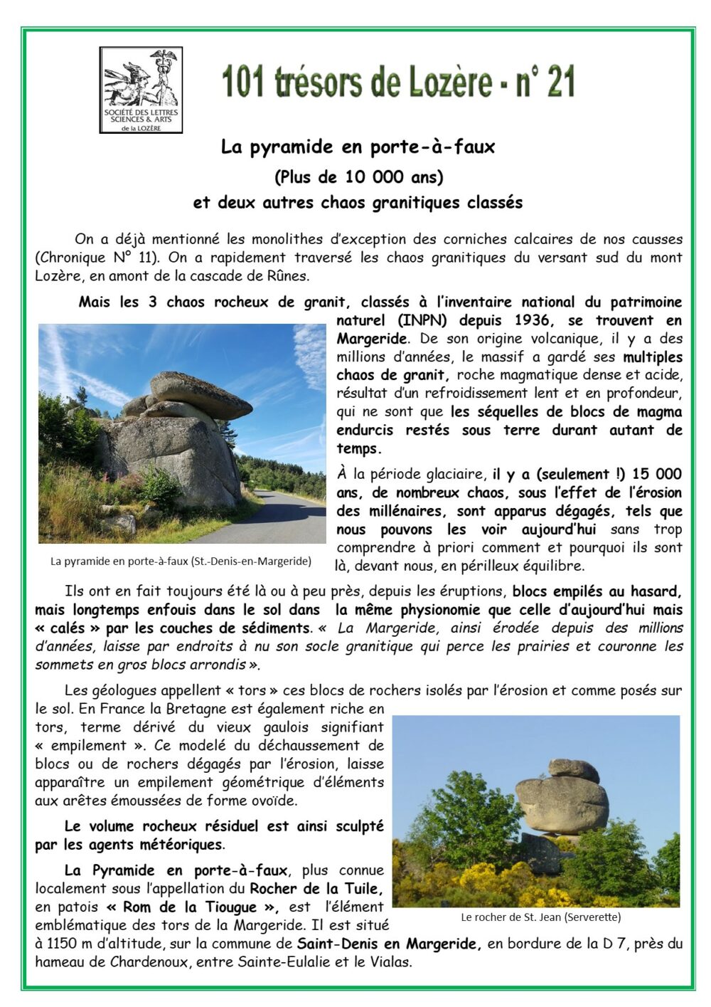 Trésors de Lozère Rubrique 21 – La pyramide en porte-à-faux et deux autres chaos granitiques Vous aimerez peut-être également Rubrique 12 – Le pont de pierre à six arches de Quézac Rubrique 29/1 – La Corniche des Cévennes – Du Col du Rey au Pomidou Rubrique 94 – Un lieu étrange, Les Choisinets