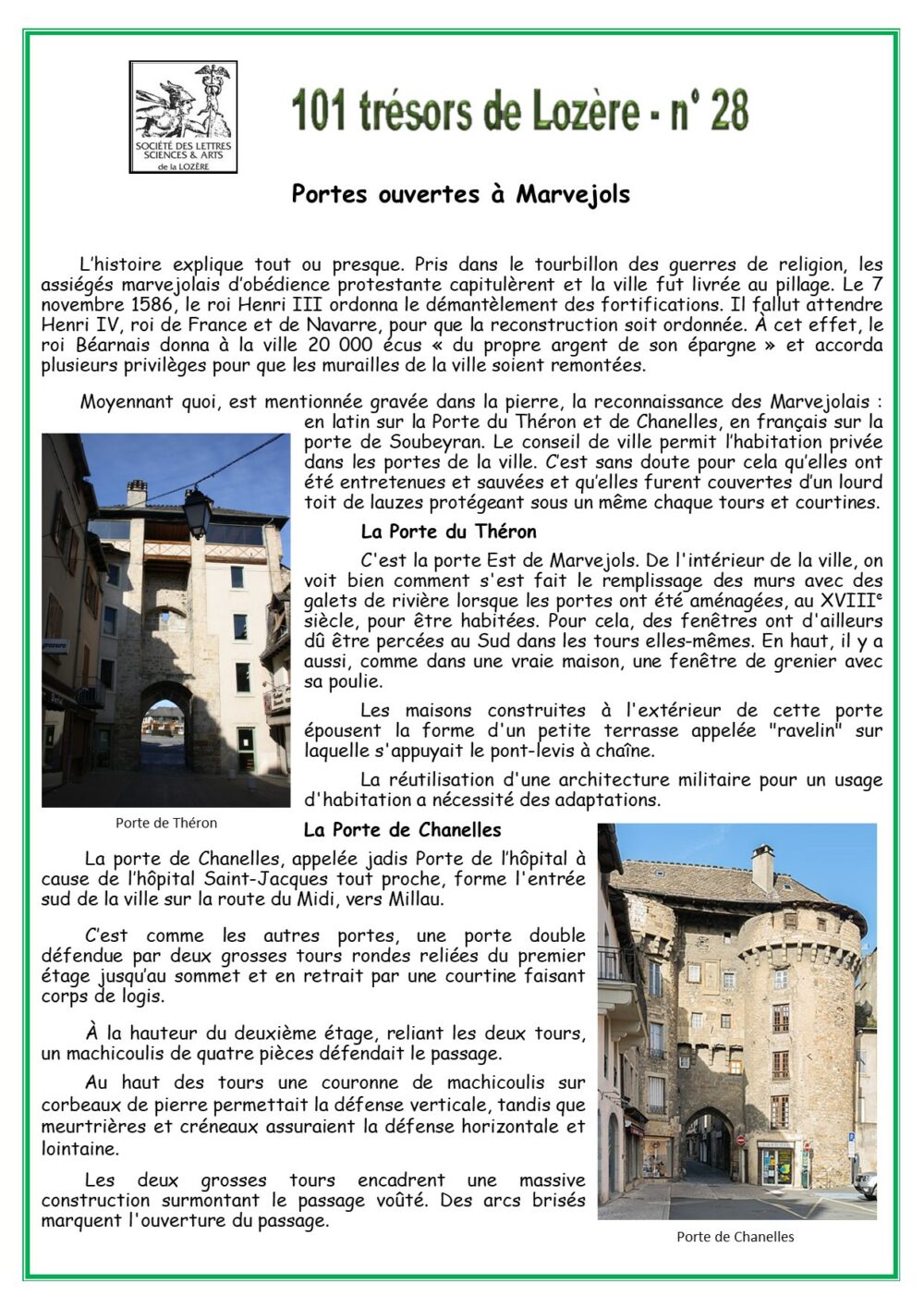 Trésors de Lozère Rubrique 28 – Portes ouvertes à Marvejols Vous aimerez peut-être également Rubrique 74 – Sainte-Enimie Rubrique 83 – Le vignoble lozérien Rubrique 65 – Javols, autrefois Anderitum, la capitale des Gabales