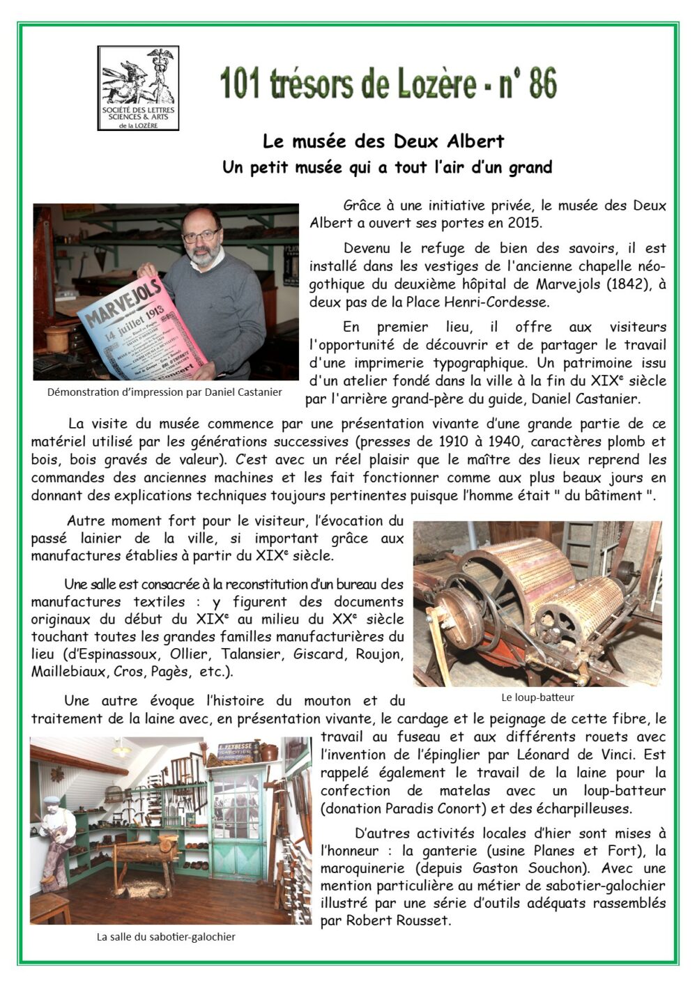 publications - inutilisé Trésors de Lozère Rubrique 86 – Le musée des deux Albert Vous aimerez peut-être également Rubrique 9 – Les clochers de tourmente Rubrique 39/2 – Les fromages de Lozère Rubrique 67 – Deux moulins à eau en état de fonctionnement