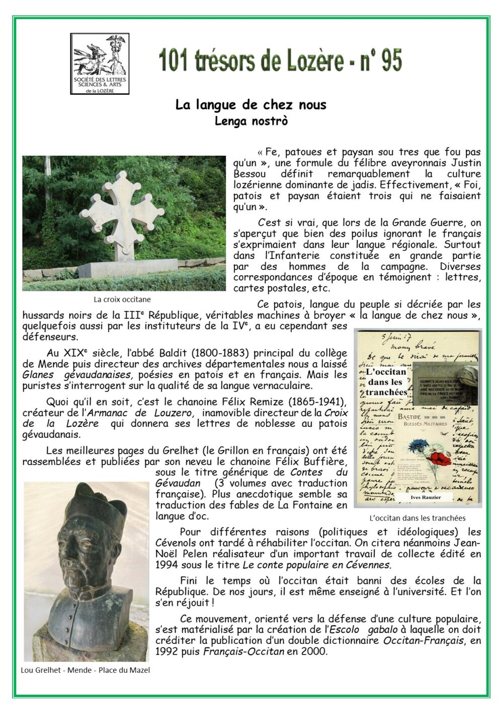 Trésors de Lozère Rubrique 95 – La langue de chez nous Vous aimerez peut-être également Rubrique31/2 – Le pape Urbain V (suite) Rubrique 21 – La pyramide en porte-à-faux et deux autres chaos granitiques Rubrique 72 – Les mouflons des corniches des Gorges du Tarn